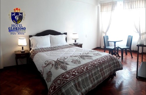 Hotel Glorioso is offering accommodations in Oruro. This 2-star hotel offers a tour desk and luggage storage space. The property provides a 24-hour front desk, airport transportation, room service and free WiFi throughout the property. Each room is equipped with a flat-screen TV, and certain rooms at the hotel have a city view. Guests at Hotel Glorioso can enjoy an American breakfast. The nearest airport is Juan Mendoza Airport, 1.9 miles from the accommodation.