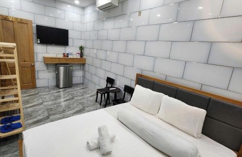 Located in Vung Tau, 1.3 miles from Back Beach, Hotel & Homestay LABUBU provides accommodations with a garden, free private parking, a shared lounge and a bar. Featuring room service, this property also provides guests with a playground. The property has a 24-hour front desk, airport transportation, a shared kitchen and free WiFi throughout the property. Guest rooms are equipped with air conditioning, a flat-screen TV with satellite channels, a fridge, a coffee machine, a bidet, free toiletries and a desk. Featuring a private bathroom with a shower and a hairdryer, certain rooms at the love hotel also offer a city view. Guest rooms will provide guests with a closet and an electric tea pot. Hotel & Homestay LABUBU has a grill. You can play darts at the accommodation, and bike rental and car rental are available. Christ of Vung Tau is 0.9 miles from Hotel & Homestay LABUBU, while Nghinh Phong Cape is 1.5 miles away. Tan Son Nhat International Airport is 63 miles from the property.