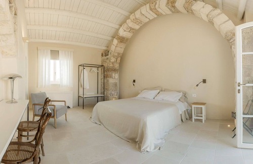 Located on the ground floor of Masseria Vaccaro, with the entrance from the courtyard, it is a spacious room for two people, the ideal location for unforgettable stays and holidays in Puglia.