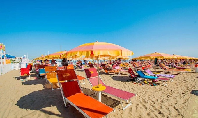 Pet-friendly hotel with a nearby private beach connected to a shopping center in Rimini