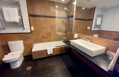 Hotel Isla de La Garena is located in Alcalá de Henares' La Garena commercial district. It offers a spa, free parking, free Wi-Fi and rooms with a private terrace. All rooms at the Isla de la Garena Hotel are air-conditioned and have a flat-screen TV with satellite channels. The terraces have views of the pool. The free spa center includes a heated indoor pool with water jets, and Turkish baths. There is also a gym and a large outdoor pool, open in summer. Around the pool there is a garden and a spacious sun terrace. The hotel has an à la carte restaurant, which serves Mediterranean cuisine for lunch and dinner. There is also an on-site café. The hotel is 984 feet from the Garena shopping and leisure area. Central Alcalá de Henares is only 1.9 mi away, and Madrid city center is within 19 mi. Madrid Airport and the IFEMA trade fair site are both 9.3 mi away. The hotel is easily accessible from the A-2 Motorway.