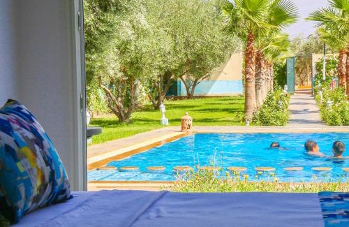 Located in Marrakesh, 20 miles from Bahia Palace, Hotel Jnane riad has accommodations with a garden, free private parking, a terrace and a restaurant. The property is around 20 miles from Djemaa El Fna, 20 miles from Koutoubia and 21 miles from Menara Gardens. The property provides a 24-hour front desk, airport transportation, room service and free WiFi throughout the property. Rooms have air conditioning and a flat-screen TV, and certain accommodations at the hotel have a balcony. A continental breakfast is available at Hotel Jnane riad. At the accommodation guests are welcome to use an indoor swimming pool. Mouassine Museum is 21 miles from Hotel Jnane riad, while Marrakesh Train Station is 21 miles from the property. Marrakech-Menara Airport is 21 miles away.