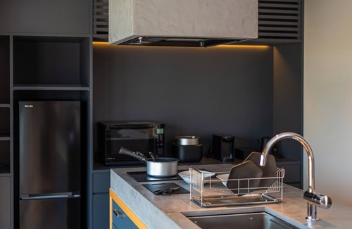 While you're here, you can enjoy all the comforts of home and more, including a refrigerator and free WiFi, as well as a TV and a bidet. Other amenities include towels, slippers, a phone, and a desk.