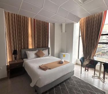 BathroomBathtub or shower, Toilet paper, Shampoo, Free toiletries, Towels, Shower, Private bathroomMedia & TechnologyCable channels, TV, Flat-screen TV, TelephoneGeneralSmoke Alarm, Key access, Carbon monoxide detector, Tile/Marble floor, Air conditioningLiving AreaDesk, Dining areaViewView, City viewServicesWake-up serviceBedroomWardrobe or closet, LinensKitchenCleaning productsAccessibilityUpper floors accessible by elevator, Accessible by elevatorRoom AmenitiesNon-feather pillow, Socket near the bed, Hypoallergenic pillowSafety featuresAir purifiersPhysical distancingSingle-room AC for guest accommodationCleanliness & disinfectionHand sanitizer |