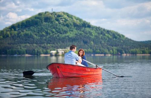 Offering modern-style rooms and a restaurant, Hotel Port Doksy enjoys a location at the Mácha Lake. A private sandy lakeshore, 2 swimming pools and several sports facilities are featured. The wellness center includes a sauna and a hot tub. Each room is spacious and comes with carpeted floors, satellite TV and a mini-bar. The private bathroom has a bath or shower, a hairdryer and free toiletries. A room with a balcony is available upon request and for a surcharge. Samples of Czech cuisine are served at the hotel’s restaurant, as well as international and fish specialties. The complex consists of a heated outdoor pool, an indoor pool and 2 bowling lanes, as well as tennis, mini golf and beach volleyball courts. Front desk offers possibilities for renting bikes, as well as rowboats and pedal boats for use at the lake. A fitness center is available at the hotel. There is also a massage center with professionally trained employes. Private parking is available on site free of charge. Doksy Train Stop is 2297 feet away. Lemberk Castle is 22 mi away, while Bezděz Castle is at a distance of 7.5 mi. The town of Česká Lípa is at a distance of 12 mi, while Prague is 50 mi to the south from Port Doksy.