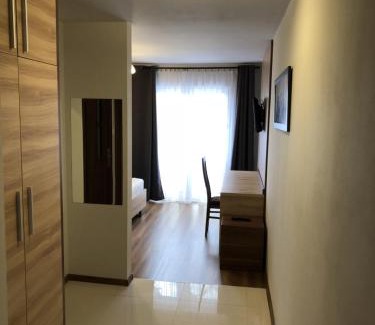 BathroomShower, Private bathroom, Toilet paper, Bathtub or showerMedia & TechnologyFlat-screen TV, TVKitchenKitchenetteLiving AreaDeskBedroomWardrobe or closetRoom AmenitiesClothes rack, Socket near the bed, Feather pillowGeneralTrash cans |