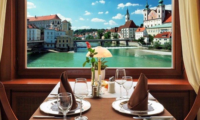 This traditional 4-star hotel, which is almost 500 years old, is directly located at the confluence of the rivers Steyr and Enns in the historic old town of Steyr. Hotel & Restaurant Minichmayr is a cultural and architectural gem with unique panoramic views. Comfortable rooms and suites, a modern business center, and award-winning cuisine featuring regional and international specialties of the season can be found at Hotel Minichmayr. The spa area offers a panoramic hot tub, a sauna, an aromatic steam bath, an infrared cabin, massage showers, a solarium, and a lounge with panoramic views.