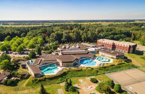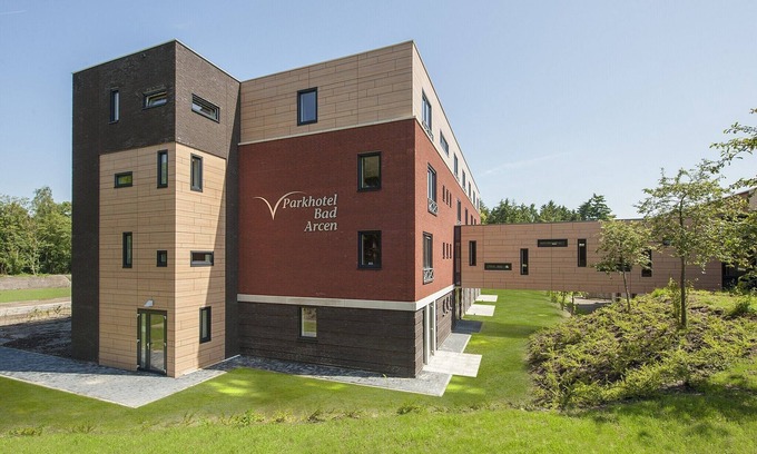 This hotel room is located in Parkhotel Bad Arcen, directly situated next to the Thermaalbad Arcen wellness centre. It is situated some 3 kilometres from Arcen, a historic fortified town on the banks of the Meuse river which is part of the Maasduinen National Park. In 2015 and 2019, Parkhotel Bad Arcen was voted the best wellness hotel in the Netherlands. The hotel is part of holiday resort Vakantiepark Klein Vink. This allows you to make use of all the holiday resort's facilities. This hotel room for four people is situated on the corner and are accessible via a lift. There are four single box-spring beds, some of which are in a double setup. The rooms are comfortably furnished and feature an electric kettle, a TV, four single box-spring beds, some of which are in a double setup), a bathroom with a shower and a separate toilet. There's a (French) balcony or terrace Only the rooms situated on the ground floor with a terrace have four garden chairs. Some of the features: Breakfast is included. Free access to Thermaalbad Arcen from the moment you check in until an hour and a half after you check out. Check-in from 14:00 and check-out until 11:00. A cot is available upon request. Vakantiepark Klein Vink has various holiday homes available for booking for groups ranging from 2 to 16 people. [Note: We would like to inform you that our restaurant De Bron will be closed from 5:00 pm on Wednesday evening, June 19, due to a staff outing. We sincerely apologize for any inconvenience this may cause. You are welcome that evening in the Brasserie of the Thermaalbad Arcen, or at the nearby Restaurant De Kloosterhoeve, where you can enjoy a delicious dinner in an atmospheric setting. ]