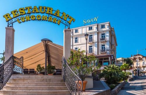 Located in the center of Opatija, right by the sea and the picturesque 7.5 mi long Lungomare promenade, Hotel Savoy offers luxurious rooms with an elegant interior. Nearly all rooms have a balcony with a spectacular view over Kvarner bay. The hotel offers a wellness area, the restaurant Lungo Mare and an aperitif bar with a beautiful terrace. In the restaurant, local and international specialties are served. Opatija has a very mild climate and a long-lasting bathing season, and the private beach of Hotel Savoy ensures a great vacation experience. Deckchairs and parasols are available at additional costs. Close to the hotel there are cafés, a wine shop, boutiques, a casino and a disco. A garage parking is provided 164 feet from the hotel.