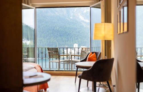 Food & DrinkMinibar, Tea/Coffee maker, Chocolate/Cookies, Bottle of waterGeneralInterconnecting room(s) available, Smoke Alarm, Lockers, Fire extinguisher, Safe, Key access, Heating, Trash cansMedia & TechnologyFlat-screen TV, Radio, TV, Telephone, Satellite channelsBathroomToilet, Private bathroom, Bathtub or shower, Hairdryer, Slippers, Shampoo, Free toiletries, Conditioner, Body soap, Shower cap, Towels, Toothbrush, Bathrobe, Toilet paperServicesWake-up service, Wake-up service/Alarm clockOutdoorsBalcony, TerraceLiving AreaDeskViewView, Lake view, Mountain viewKitchenElectric kettle, Coffee machineBedroomLinens, Wardrobe or closetAccessibilityAdapted bath, Accessible by elevator, Upper floors accessible by elevatorRoom AmenitiesSocket near the bed, Adapter, Feather pillowLayoutWindowExclusive servicesFree spa access, Concierge services |