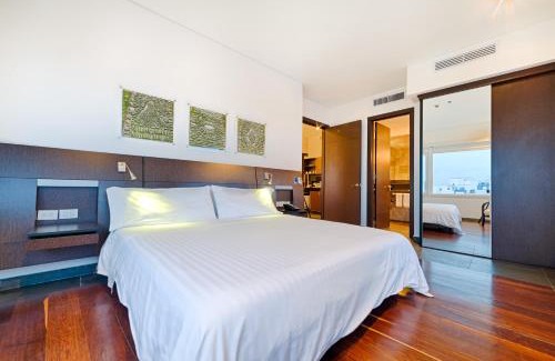 Food & DrinkMinibarBathroomFree toiletries, Bathrobe, Shower, Private bathroom, Body soap, Bathtub or shower, Toilet paper, Shampoo, Hairdryer, Conditioner, Toilet, TowelsGeneralTile/Marble floor, Trash cans, Key card access, Key access, Ironing facilities, Iron, Air conditioning, Hardwood or parquet floors, Safe, Smoke Alarm, Laptop safe, Carbon monoxide detector, SoundproofMedia & TechnologyTelephone, Streaming service (like Netflix), Cable channels, Flat-screen TV, TVKitchenMicrowave, Coffee machine, RefrigeratorLiving AreaSitting area, Sofa, Desk, Dining areaViewView, City viewServicesWake-up serviceBedroomLinens, Wardrobe or closet, Childrens' cribsAccessibilityAccessible by elevator, Upper floors accessible by elevator, Toilet with grab rails, Entire unit wheelchair accessible, Adapted bathPool and SpaPool towelsRoom AmenitiesHypoallergenic pillow, Socket near the bed |