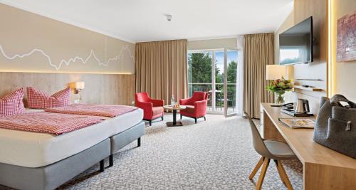 Hotel Traumblick offers accommodations in the winter sports and health resort of Oberhof in a quiet location on the edge of the Thuringian Forest.. Free WiFi is available throughout the property and free private parking is available on site. Every room comes with a flat-screen TV, a private bathroom with a shower, free toiletries and hairdryer and a balcony offering views of the Thuringian countryside. A breakfast buffet is served daily. Guests can engage in hiking activities at the Rennsteig, Nordic walking and mountain biking tours during the whole year. Thüringer Wintersportzentrum Oberhof is 2297 feet from Hotel Traumblick, while Rennsteiggarten Oberhof is 2297 feet from the property. The nearest airport is Erfurt-Weimar Airport, 21 mi from Hotel Traumblick.