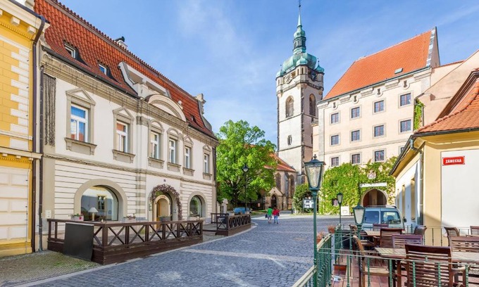 Offering city views, Hotel U Rytíře in Mělník offers accommodations, a terrace, and a bar. This 3-star apartment offers luggage storage space, daily room service, and free Wifi. Outdoor seating is also available at the apartment. At the apartment complex, the units include a desk, a flat-screen TV, a private bathroom, bed linen, and towels. The rooms include a kettle, while some rooms also offer a fully equipped kitchen with a dishwasher, an oven, and a microwave. Additional in-room amenities include wine or champagne. A selection of options including warm dishes, fresh pastries, and champagne are available for the buffet breakfast. Sightseeing tours are available in the surroundings. Both a bicycle rental service and a car rental service are available at Hotel U Rytíře, while cycling and hiking can be enjoyed nearby. Park Mirakulum is 24 miles from the accommodation, while Prague ZOO is 27 miles away. Vaclav Havel Prague Airport is 33 miles from the property, and the property offers a paid airport shuttle service.