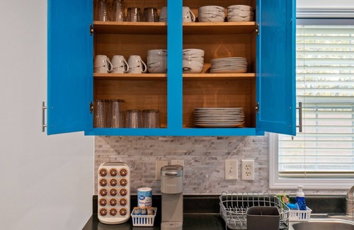 Drive up to your cabin in woods on paved roads on to 360 driveway, that holds 8 cars. Tap your unique code on the keypad, and enter inside your open concept modern and crown molded living space and sit down on your 107 inch velvet sofas. You’re excited to prepare meals for your friends and family in our fully stocked kitchen.