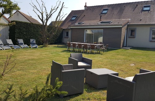 Perfectly located in the heart of the local tourist area in Tour en Sologne, you can enjoy a 160 m2 house comprising a 50m2 living room open to a fitted kitchen. You can prepare delicious recipes in the well-equipped kitchen, then enjoy them around the dining table for 14 guests or outside in your garden.