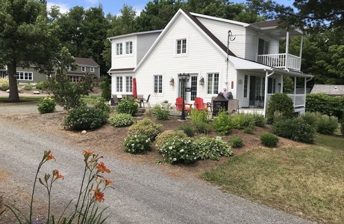 Located on a private estate, in Saint-jean-de-l'île-d'Orléans, quiet and safe, accredited by Tourisme Québec, in the countryside with access to the city in minutes. House of 3 bedrooms, on 2 floors, a bedroom with a Queen bed with connecting bathroom and a bedroom upstairs with two Queen bed with shower room and another with 2 single beds, 1 other bathroom with shower. Can accommodate a maximum of 8 people. Very well equipped kitchen with dishwasher and microwave. 3 landscaped terraces, 2 covered and another uncovered. Patio set with swing allowing to take your meals outside. Close to the pool. Wifi, parking, swimming pool (shared with 6 other cottages) heated salt water inground, BBQ, playground with trampoline and space for campfire. Nearby restaurant, grocery store, bakery, antique shops, art gallery, vinegar shop, artisans, market gardeners, museum, dairy bar, bistro, café, dairy producers.