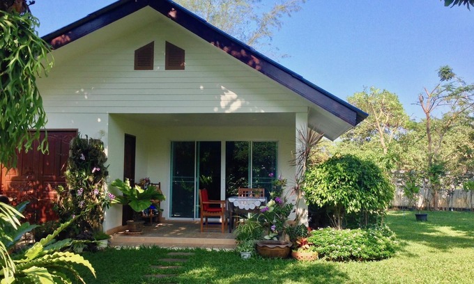 Situated just a few metres from the beautiful white sandy beach of Thai Muang - classified as a national park - the house is surrounded by a pretty tropical garden (frangipani, bougainvillea, hibiscus, orchids, banana trees, etc.). ) and is fully equipped: fridge, electric coffee maker, microwave, gas cooker with oven, washing machine, fresh water dispenser, SONY 55" 4K TV, European-standard DVD-bluray player, TV box, NetFlix, PrimeVideo and AppleTV+...The rental is completely independent of the main house.