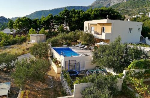 House Arija offers accommodations in Makarska, 21 miles from Blue Lake and 2 miles from St. Marc Cathedral. The air-conditioned accommodation is 1.4 miles from Ratac Beach, and guests can benefit from private parking available on site and free Wifi. Outdoor seating is also available at the vacation home. House Arija features 5 bedrooms, a fully equipped kitchen with a dishwasher and an oven, a washing machine, and 6 bathrooms with a hair dryer. The property offers sea views. Guests can enjoy the outdoor swimming pool and garden at the accommodation. Makarska Main Square is 2 miles from House Arija, while Makarska Main Bus Station is 2.3 miles away. Brac Airport is 22 miles from the property.