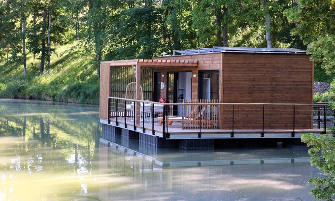 House Boat 'L'Õdacieuse : Écolodge Flottant Et Unique' with Lake View, Terrace and Air Conditioning | Boat Rental in Sainte Gemme