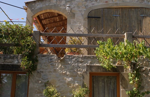 'Côté Sud' - Village stone house overlooking the Mazes plain with a beautiful view of Pic Saint Loup. On different levels (180 m²) open onto the garden, large living room (kitchen, dining room, living room) giving access to two bedrooms separated by a shower room with wc and communicating on the semi-shaded terrace; upstairs, bedroom with shower room and wc, and solarium terrace.