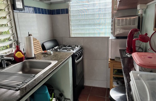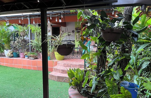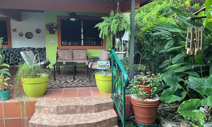 Blocks from the beach in Playa Coronado, Panamá. This cottage/casita comes with private master bedroom, small living room that can also be used as a second bedroom, a bathroom with hot water, A/C, TV, and WiFi. You'll also have a fully equipped private kitchen with stove, refrigerator, microwave, air fryer, ice maker, blender, etc. and huge outdoor living/sitting area with hammocks. You will also have access to a laundry room and a pool. Secure parking available under carport. Quiet neighborhood.