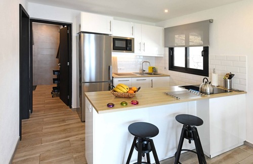Very nice, small holiday house with modern furniture and private pool. The ideal place to relax and as a starting point for excursions and hiking.The house has a living room and a kitchen with a dining table. Furthermore there is a bedroom with a double bed (160 x 200 cm), a bathroom with shower and a laundry room. The outside area offers a nice terrace with dining table and sun beds to enjoy the wonderful sea views, a private swimming pool with massage jet and an orchard of fruit trees. The pool can be heated for an additional cost, please contact us! It is the perfect place for a relaxing holiday and to discover the island.Children under 12 are not allowed for safety reasonsNo pets allowedNo parties/events/celebrations are allowed in our accommodations.