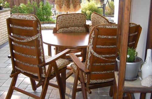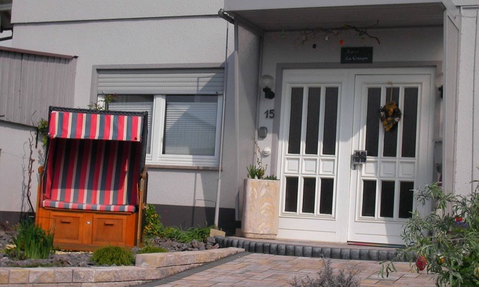 Features: Apartment1 bedroom, 1 living room, 1 kitchen, 1 bathroom with walk-in shower, sink and toilet. The apartment has about 55 square meters and can accommodate 4 people. The bedroom has a water bed for 2 persons. Bed linen and towels are provided. The living room with pull more seat sofa provides additional sleeping space for 2 more people. The kitchen with a stove is equipped with a refrigerator incl. Freezer, kettle, toaster, coffee maker, dishes for 4 people and enough towels. Flat-screen TV, Radio and Internet Wi-Fi are available. Outside: Outside invites a covered terrace with garden furniture one to linger, 2 e-bikes can be used for excursions. In the front garden you can enjoy the wonderful view in a beach chair into Amorbachtal.