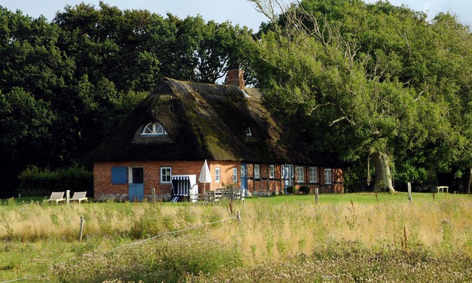 Slightly elevated above the sea behind two skewed trees, surrounded by the pastures of wild horses and highland cattle, the Fischerkate lies completely alone in the middle of the original nature of the Geltinger Birk nature reserve with a view of the Geltinger Bay. This thatched roof kate was previously inhabited by fishermen. Before the Beveroer Noer was dammed in 1820, the milk of the cattle grazing the birch was transferred to Nordschau. Later the well-known Lutheran theologian and politician Martin Pörksen found a home here with his wife and their 13 children. The Fischerkate has been a holiday home for many years. As part of the renovations, the historical character that gives the house its unique charm has been preserved. Preserved original elements of the stable and partly historical doors testify to the history of this Kate.