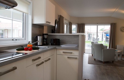 Holiday house with approx. 45sqm and space for up to four people. 2 bedrooms, 1 with double bed and TV and 1 with two single beds, 1 bathroom. Large living room with kitchen, seating and entertainment media (TV). Outside there is a parking space for your car and the terrace invites you to relax. The chalets are located in our own parking area with our own driveway.