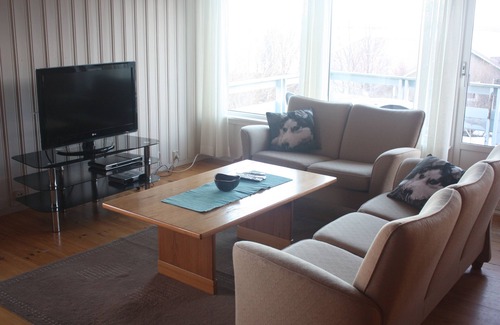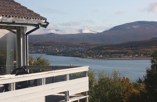 Big part of a semi-detached house, perfect for a family vacation or larger groups. The house is 2,5 miles (4 km) from the airport and 6 miles (9 km) from the city center. Spacious with own porch, a lovely view over Tromsø, 5 bedrooms, 2 bathrooms, big living room, kitchen and even a sauna.