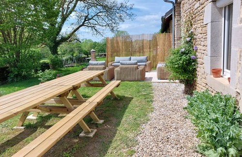 facing meadows, which smells good, polish, wood fire and jam. Air of yesteryear with the comfort we love. Cozy, healthy and serene getaway. This accommodation, made up of four bedrooms, three bathrooms, 3 toilets, living room, dining room and kitchen, offers you a very pleasant space.