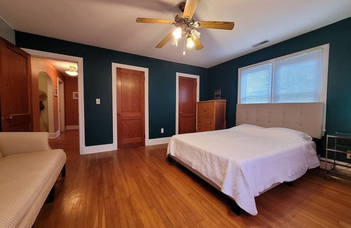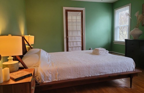 Located in Cambridge, this delightful house is a dream. With 2 tranquil bedrooms featuring 2 queen beds, guests will feel right at home. The welcoming bathroom offers a hair dryer, bathtub, bidet, and shower for ultimate relaxation. Need to catch up on work? The additional office space with a comfy couch is perfect for productivity. Enjoy modern comforts like AC, WiFi, heating, a washing machine, and an iron. Whether you're exploring the city or unwinding in the peaceful surroundings, you're sure to make fantastic memories with a stay at our place.