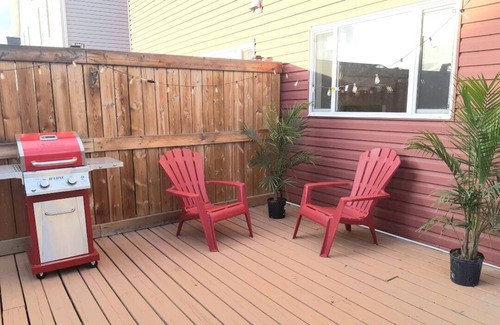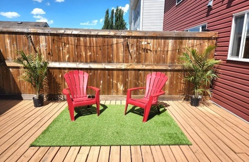 Discounts possible! Inquire. This stylish newly furnished house is located in Edmonton's family friendly neighborhood, 12-15 min from the airport, 5 min from shopping and about 8 min from South common. It's pet friendly with a fully fenced backyard, even though it's mainly one huge deck, not a big grassy area.