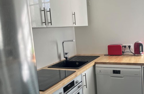 The kitchen is equipped with an oven, a stovetop, and a refrigerator, as well as a coffee maker, an electric kettle, and a microwave. Bathroom amenities include a hair dryer and towels. And you can even travel light because you'll have access to laundry facilities. Other amenities at this 2-bedroom, 1-bathroom rental include bed sheets and heating.
