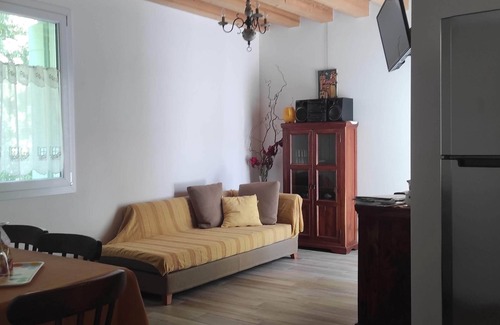 The house has a confortable open space with living/dining room and kithchen, where guests can relax or eat meals.