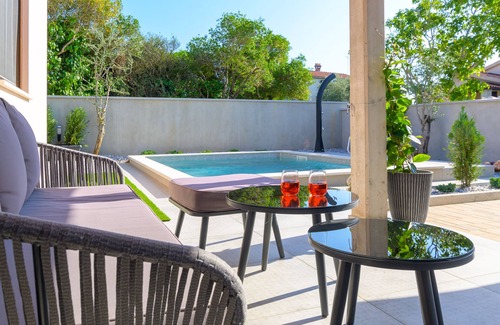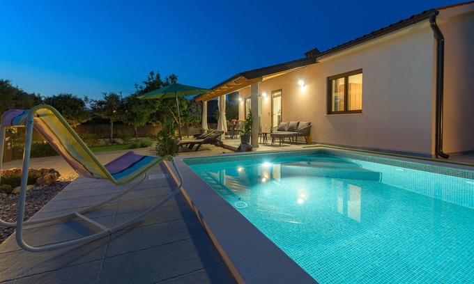House Julia is located in an attractive area of Pula, just 4 km from the beach. A restaurant and a café are only 1 km away, and a grocery store is also nearby.This house offers complete privacy and comfort, featuring 2 bedrooms, 2 bathrooms, a fully equipped kitchen, a dining area, and a living room with SAT TV and WiFi. The house is fully air-conditioned.The spacious yard includes a heated pool, barbecue, outdoor dining area, and 4 sun loungers – perfect for relaxing and enjoying the outdoors.In the surrounding area, guests can enjoy various activities: walking and cycling along the coast, visiting historical landmarks in Pula such as the Amphitheatre and the Temple of Augustus, exploring local markets, or relaxing on nearby beaches. The area also offers opportunities for trips around Istria, wine and olive oil tasting, as well as sports activities such as diving and sailing.House Julia is ideal for a carefree holiday, offering the perfect combination of privacy, comfort, and a convenient location, with plenty of activities for all ages. Distances: post office 3000m, emergency room 3500m, gas station 950m, restaurant 1000m, shop 20m, center 3000m, sea 4000m, beach 4000m, airport 6000m.