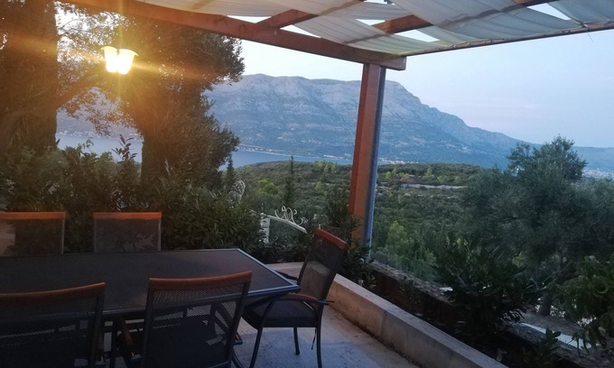 It is ideal for families and groups of up to 6 people. On the terrace you can enjoy your meal as well as the sea view.The house is only 5 minutes away by car from The Town of Korčula and 5 minutes away from the nearest beach.Bus stop is 100m from the house,also free parking place next to the house.