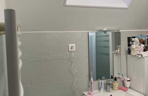 Au rdc : salle de bain, espace de vie tout confort.