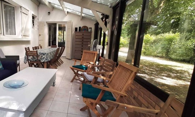 Detached house with garden (1500M2) without vis-à-vis, ideal for group and family, large veranda, both near the Atlantic (15kms), the mountain (Basque country 30kms) and Spain ( 60kms). Super for surfers (Hossegor - Biarritz) but also for children (saltwater lake in Hossegor and Vieux-Boucau), 5kms from the banks of the Adour (Saubusse, access by a small road located behind the house, ideal for bike rides), the pine forest (at 100M) and the mountain (Atlantic Pyrenees and Basque Country 30kms)