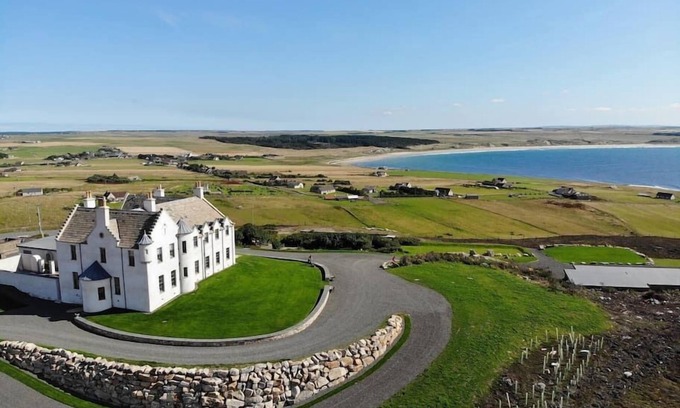The House of the Northern Gate is a beautifully restored 9 bedroom and 8 bathroom baronial-style house in the far north of Scotland with space to sleep 18... The house has incredible views in every direction from its spectacular setting on Dunnet Head, the most northerly point of mainland Britain. As well as the estate's own beach, the house sits above Dunnet Bay, one of the UK's most stunning beaches and has 1800 acres of moorland for hiking on the estate. Featured in The Crown on Netflix.