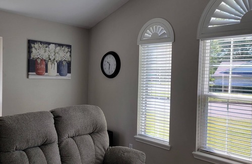 You can clean your clothes with new washer and dryer. Stay cool inside air-conditioned home away from home. Kitchen is fully stocked with all the dishes, bowls, cookware, and utensils to cook any meal. Table and chairs for up to 6 people. Cozy living room for tv watching or lounging on lazy boy couches.