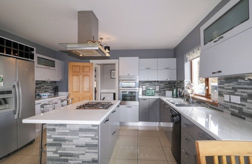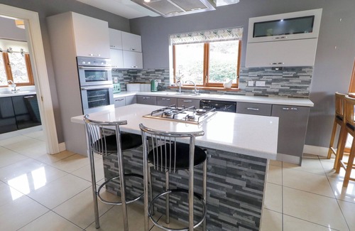 House on Ring Fort Hill is an appealing property with seven bedrooms including three double bedrooms, two king-sizes and two singles as well as two bathrooms. The kitchen/diner is fully equipped with an electric oven and hob, fridge/freezer, dishwasher, washing machine and drier. There is a large sitting room with an open fire, a mini-bar and TV. Outside there are gardens with a children's play area and decking. Sorry no smoking. You'll find a shop within 7.6 miles and there is a pub 9.4 miles away. WiFi, fuel, power, bed linen and towels are all included in the price. House on Ring Fort Hill offers superbly presented accommodation in beautiful rural surroundings.Note:This property has a good housekeeping bond of EUR 500. The outside of the property is covered by security cameras.
