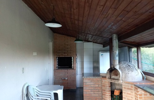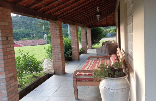 House inside a farm with total security and electronic gate in the entrance and cams, complete with 4 suites, complete kitchen set up, barbeque room, tv room, swimming pool, balcony around the house. A peaceful place to spend a weekend or your vacation. Wonderful view of Pedra Grande de Atibaia, with much green and the second best climate in the world. Come to paradise. Come to Atibaia.