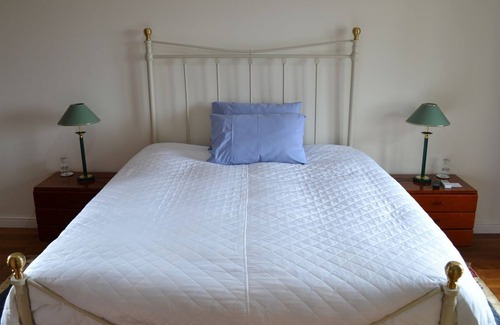 Prepare a home-cooked meal in the kitchen, complete with an oven, a stovetop, and a refrigerator, as well as a coffee maker, a microwave, and cookware. Bathroom amenities include towels and toilet paper. Other amenities include bed sheets, air conditioning, heating, and a dining table.
