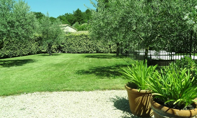The 1000m garden is closed (olive trees), private swimming pool of 3/6 with WATER HEATED at 28 degrees which allows you to swim from May, in June, September and October. The swimming pool is filled with spring water which allows it to chlorinate much less, it is completely secure for children. There are 6 sunbaths where you can take a nap to relax and fully enjoy the sun.
