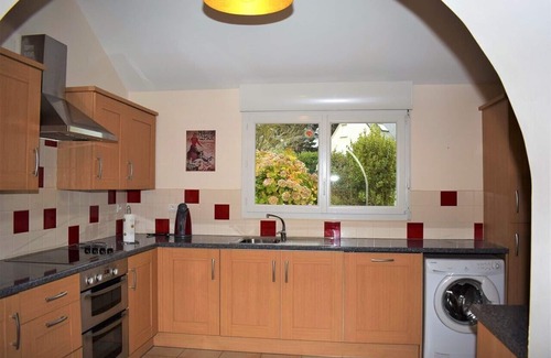 1 kitchen equipped and open to the dining room, overlooking the garden, with plate 4 ceramic hob, electric oven, fridge-freezer, microwave, dishwasher -