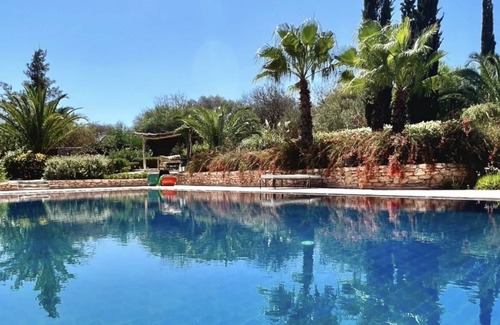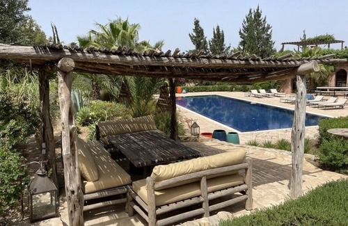 (Text automatically translated) A few minutes of Essaouira in the Argan forest, large family home where the creativity of architecture, refined décor, the accumulated memories and discreet and considerate of a totally dedicated to your every whim staff presence combine to create the magical atmosphere of a private place. 700 sqm, 6 bedrooms, large swimming pool, game room Very large terrace by the pool (heated), solarium on the roof terrace of the villa. Possibility to book a masseuse-gummy that will go to the house at a time that suits you. Near the golf course and the beach less than 10 minutes from the villa. Dream stay assured with friends or family. Possibility of full board price based on number of hosts, contact us for more details. Staff (cook and caretaker) attentive and French speaking