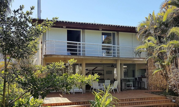 With award-winning architectural design, the house comfortably sleeps up to 12 people. There are four suites, all with air conditioning, plus bedroom and maid's bathroom, toilet, large living rooms and dining (integrated with a nice balcony) with fireplace. The balcony has barbecue with chimney for a perfect exhaust (no smoke during the barbecue). The house is fully equipped with modern furniture, new, two large refrigerators (one side by side), washer machine and dryer, spaces for four cars. Some steps across the lawn and you will be one of the best beaches on the north coast of São Paulo (12 km after the Riviera de São Lourenço), an Atlantic forest area completely preserved and listed by IBAMA. The beach is flat, ideal for sports such as tennis, jogging, cycling. The sea is calm and clean. The 200 meters is the river Guaratuba, clean and perfect water for a bath of fresh water and the practice of sports such as stand up paddle and kayak. The home is in the gated community of Pontal Guaratuba (with 24 hour security), near the open court The condo Costa del Sol.