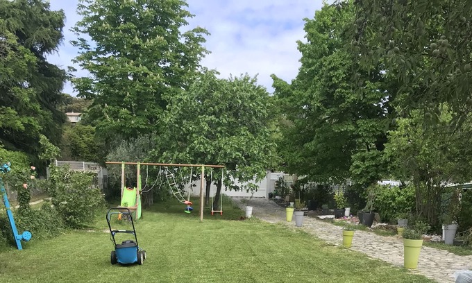 Good morning all! Lovers of the city and the countryside we are pleased to offer you our house located in the center of Montferrier sur Lez. There is a bus stop 500 meters from the house and parking spaces for your cars. 25 minutes from the beaches 15 minutes from the center of Montpellier Spa for 6 people heated in veranda. Large garden with hut, sandpit, trampoline, swing, slide ... Large barbecue terrace, pizza oven, garden furniture, deckchair, large table