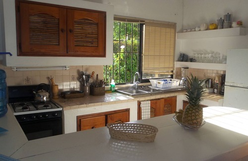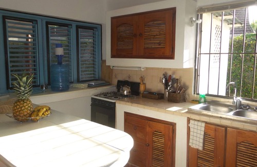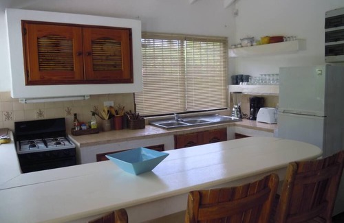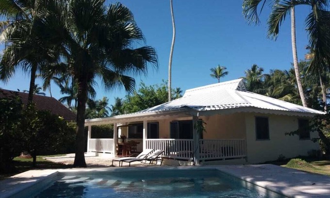 Caribbean style house with two air-conditioned bedrooms and two bathrooms that can accommodate 4 people. Fully equipped kitchen, living room with television. Terrace overlooking the tropical garden and the private pool. All in a quiet and secure residence near shops and restaurants and 200m from the beaches. The tranquility and location are ideal for a pleasant stay in Las Terrenas.
